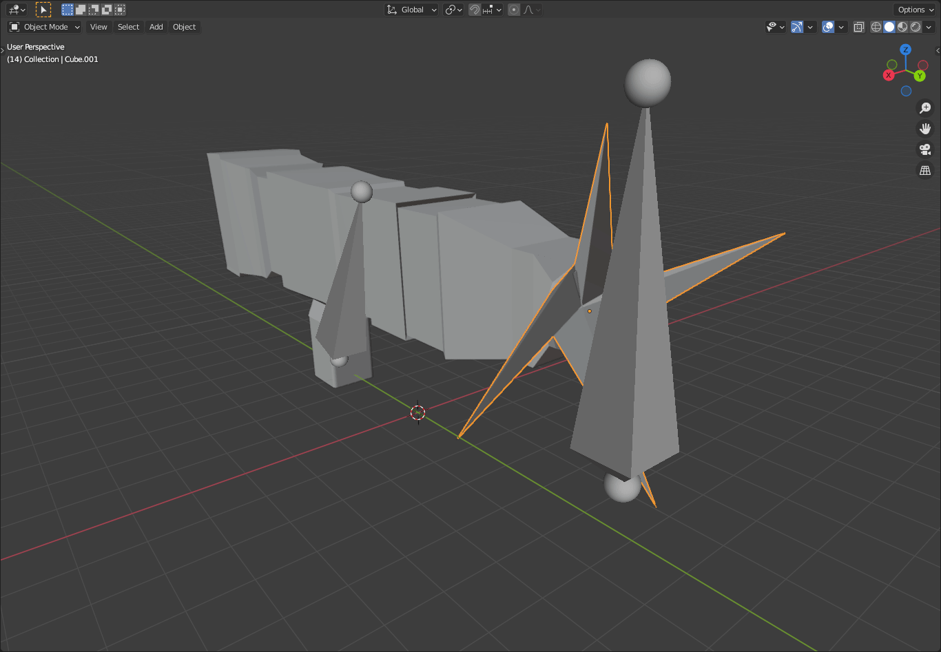 Today and yesterday, I worked on animating the blades in Blender, the tree-looking things aren't going to show in the game and I don't even know if I set them up "properly" but either way, it works!